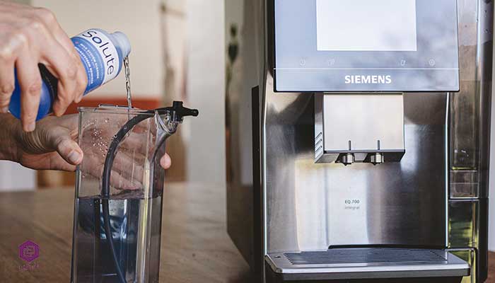 پس از پایان جرمگیری، مخزن را خالی کرده و آن را کاملاً بشویید. سپس مخزن را با آب تمیز پر کنید و چند مخزن آب را از دستگاه عبور دهید تا هیچ اثری از محلول جرمگیر باقی نماند. این مرحله بسیار مهم است، زیرا باقیماندن مواد جرمگیر میتواند به طعم قهوه آسیب بزند.