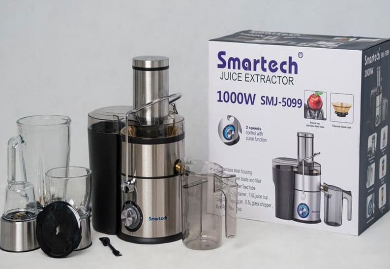 آبمیوه گیری ۴ کاره اسمارتک مدل SMJ-5099 دستگاهی خارق العاده و همه چیز تمام با توان 1000 واتی هست که امکان تهیه بدون دردسر انواع مختلف آبمیوه را دارد زیرا این دستگاه دهانه 85 میلی متری دارد و از طرفی با بدنه و پایه های استیل ضد زنگ شامل خردکن، مخلوط کن و آسیاب نیز هست تا با یک دستگاه بتوان هر نوع نیازی را برآورده کرد و آن هم با قیمتی که چند بار در کافی شاپ نوشیندی میل کنید برابری می کند و از هر لحاظ شما باید یک آبمیوه گیری ۴ کاره در خانه خود داشته باشید
