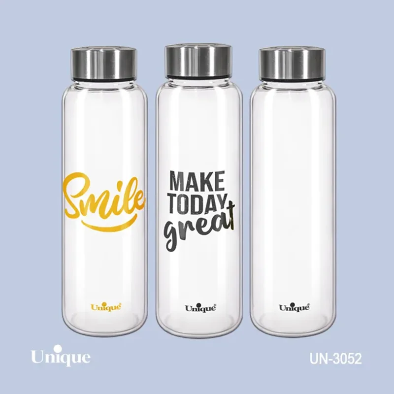 بطری آب شیشه ای با درب استیل 1230 میل یونیک