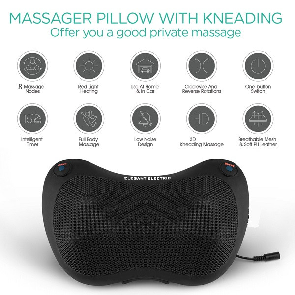 این ماساژور بالشتی با کیفیت با داشتن 8 توپ چرخان نورانی و قابلیت تغییر سرعت و جهت چرخش، مناسب ماساژ و رفع خستگی گردن و کمر میباشد. این محصول در 3 سرعت قابل تنظیم است و همچنین با استفاده از دکمه پاور امکان تغییر در جهت چرخش ماساژور از ساعتگرد به پاد ساعتگرد را دارد. همراه این ماساژور یک آداپتور برق شهری و یک آداپتور فندکی ماشین میباشد که به راحتی میتوانید از این محصول هم در منزل و هم در داخل ماشین استفاده کنید و با استفاده از کش موجود در پشت ماساژور به آسانی آن را به سری پشتی صندلی خودرو متصل نمایید.