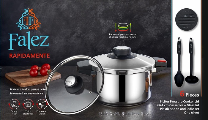 زودپز فالز با سیستم قفل ۶نقطه ای کاملا ایمن فشار داخل قابلمه حفظ می کنه
