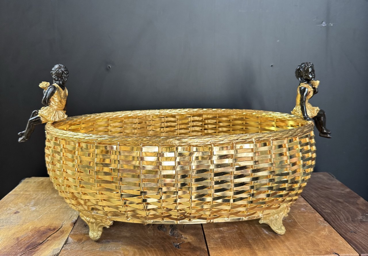 سبد حصیرباف برنجی با مجسمه های فرشته برنزی