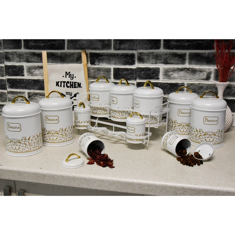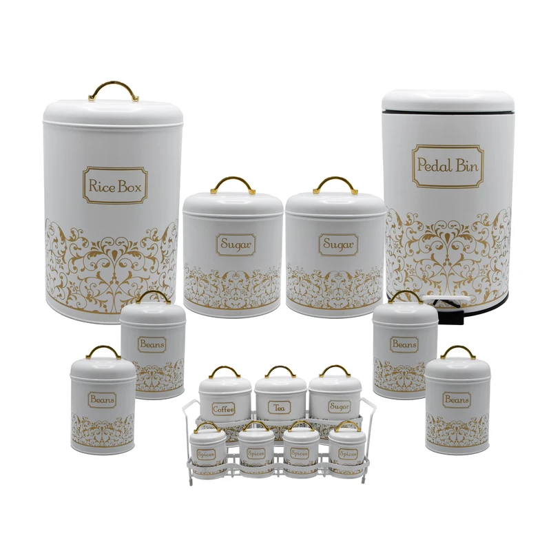 سرویس آشپزخانه 16 پارچه بی وی کی شامل جابرنجی، سطل زباله، ظرف قند و شکر، جاحبوباتی و جا ادویه است.طراحی و ساخت این محصول به گونه‌ای بوده که عنوان هر ماده روی بدنه‌ی ظرف درج شده و شما به آسانی بدون اینکه درپوش ظرف را برداشته بتوانید محتویات داخل آن را شناسایی کنید. هر کدام از این ظروف دارای درپوش و دسته بوده و وجود دسته باعث شده که به راحتی بتوانید آن را جابه‌جا کنید. درب های به کار رفته در این ظرف بسیار محکم و مقاوم بوده و محتویات داخل آن را به خوبی نگه‌داری می‌کند. درپوش موجود روی این ظروف از جنس بدنه می باشد. سطل برنج :1 عدد سطل قند :1 عدد سطل شکر :1 عدد ظروف حبوبات : 4 عدد ظروف ادویه :4 عدد ظروف پاسماوری : 3 عدد سطل زباله :1 عدد به همراه یک استند