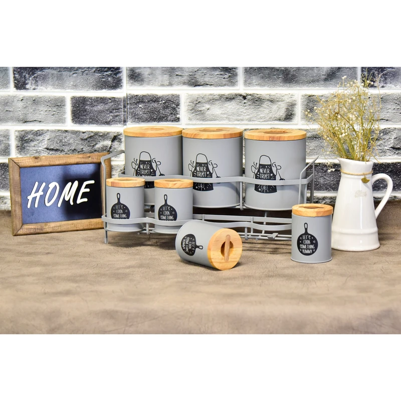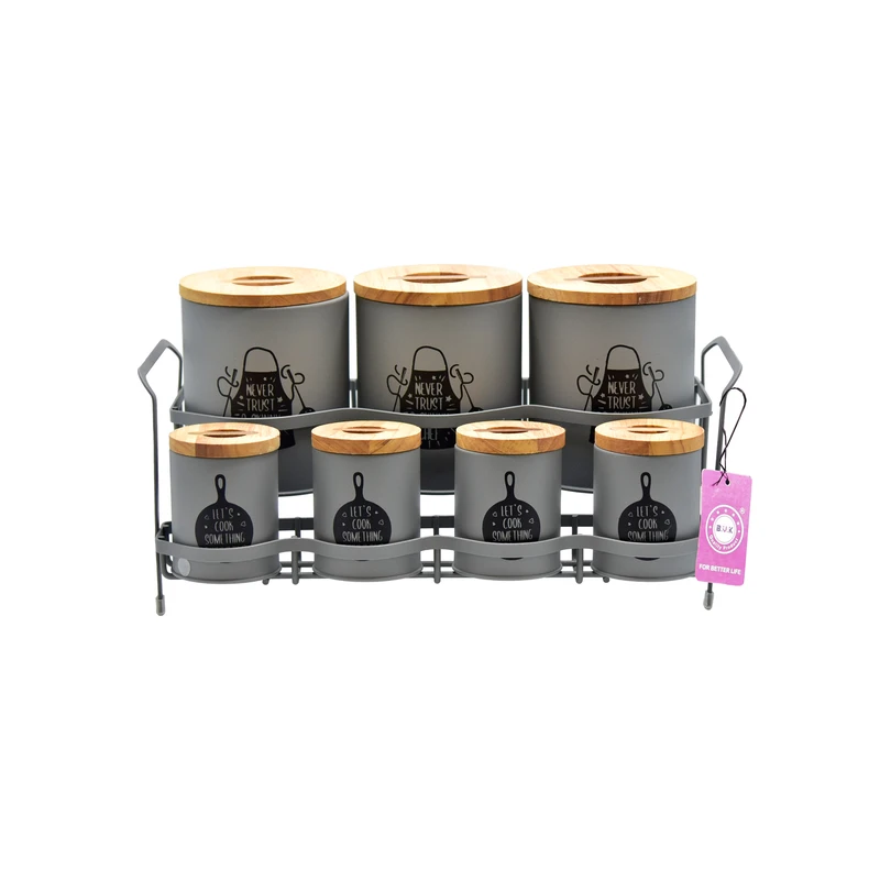 ست جای ادویه 7 پارچه B.V.K مدل درب چوب کد 863215