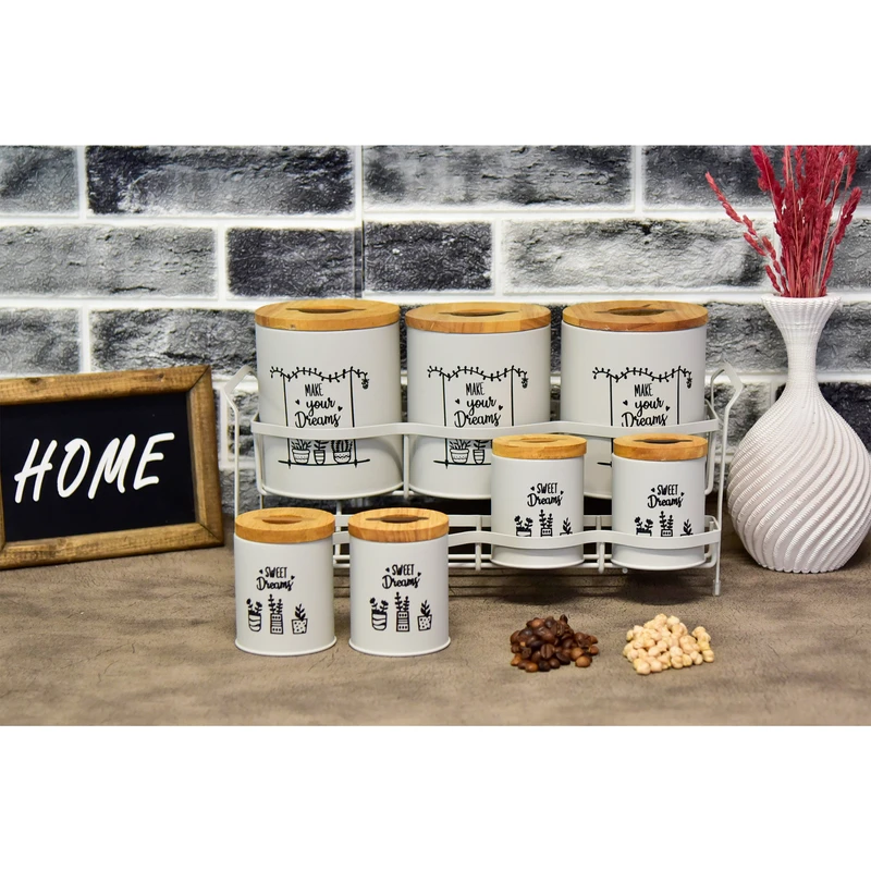 ست جای ادویه 7 پارچه B.V.K مدل درب چوب S_K کد 863416