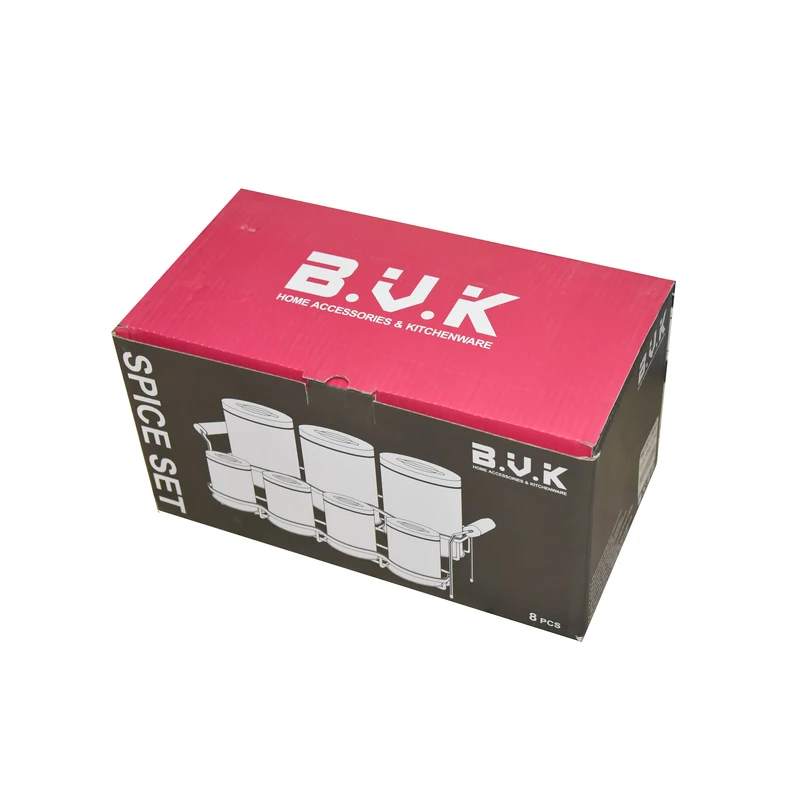 ست جای ادویه 8 پارچه بی.وی.کی مدل درب چوب S_K