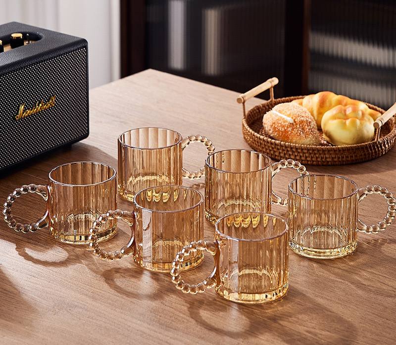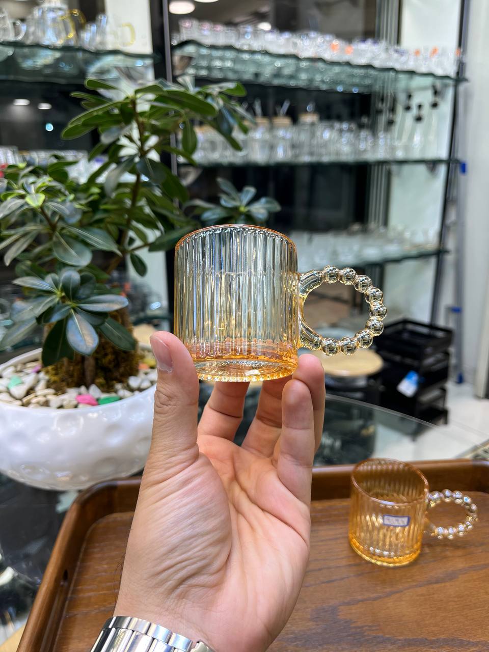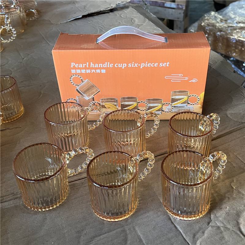 ست 6 عددی شات عسلی راه راه دسته مراریدی