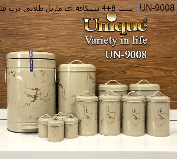 ست 8 + 4 نسکافه ای ماربل طلایی درب فلزی