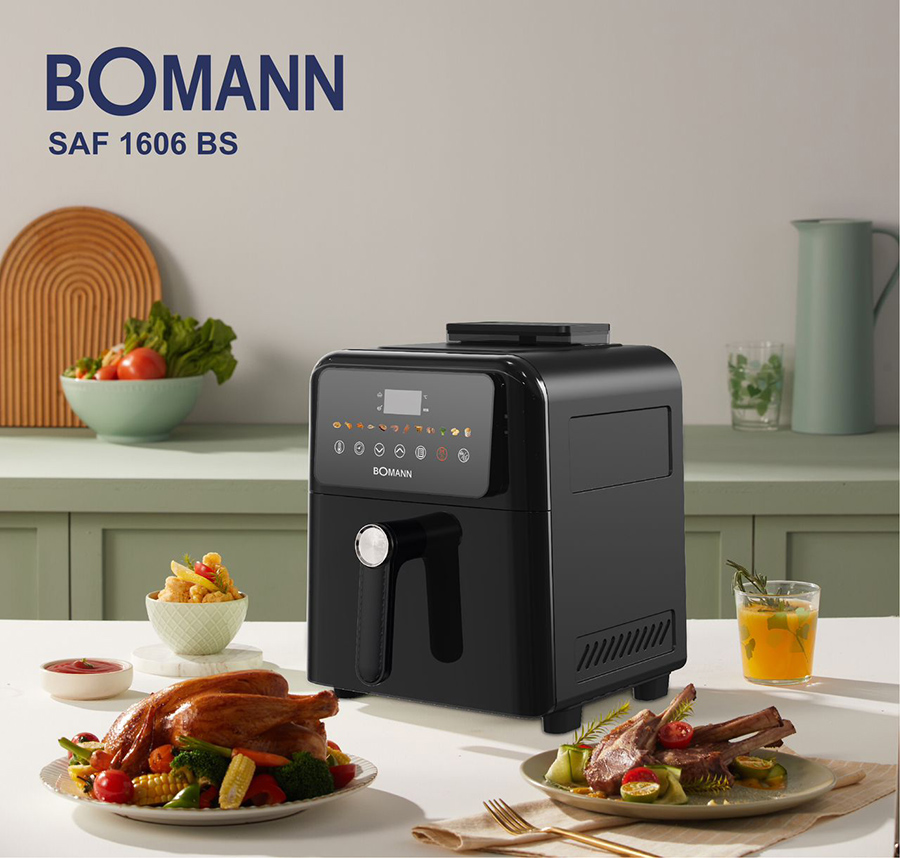 المنت رویی سرخ کن رژیمی بومان مدل SAF 1606 BS دارای توان 1800 وات و المنت پایینی 500 وات است. این دو عنصر حرارت را به خوبی به غذا منتقل می کنند و نیازی نیست غذا را زیر و رو کنید. نه برنامه پخت و پز مختلف وجود دارد. با توجه به نیاز خود از آنها استفاده کنید. نمایشگر سرخ کن رژیمی Bomann مدل SAF 1606 BS لمسی و این ویژگی است که رابط کاربری بسیار جذابی را ایجاد می کند.