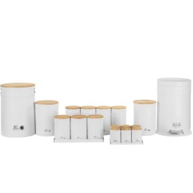 این سرویس آشپزخانه راکلند 19 پارچه مدل تمیس شامل سرویس ادویه 6 عدد + سینی مخصوص سرویس حبوبات 4 عدد سرویس پا سماوری 3 عدد + سینی مخصوص قند و شکر 2 عدد برنج 1 عدد سطل زباله 1 عدد می شود.
