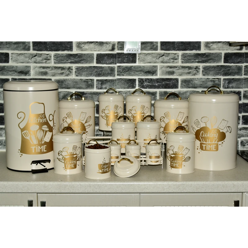 سرویس آشپزخانه 16 پارچه بی وی کی شامل جابرنجی، سطل زباله، ظرف قند و شکر، جاحبوباتی و جا ادویه است.طراحی و ساخت این محصول به گونه‌ای بوده که عنوان هر ماده روی بدنه‌ی ظرف درج شده و شما به آسانی بدون اینکه درپوش ظرف را برداشته بتوانید محتویات داخل آن را شناسایی کنید. هر کدام از این ظروف دارای درپوش و دسته بوده و وجود دسته باعث شده که به راحتی بتوانید آن را جابه‌جا کنید. درب های به کار رفته در این ظرف بسیار محکم و مقاوم بوده و محتویات داخل آن را به خوبی نگه‌داری می‌کند. درپوش موجود روی این ظروف از جنس بدنه می باشد. سطل برنج :1 عدد سطل قند :1 عدد سطل شکر :1 عدد ظروف حبوبات : 4 عدد ظروف ادویه :4 عدد ظروف پاسماوری : 3 عدد سطل زباله :1 عدد به همراه یک استند
