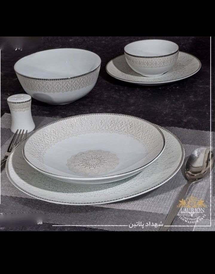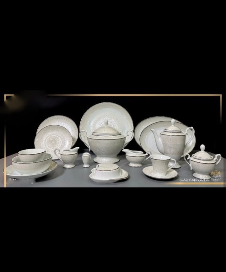 پلو خوری 18 عدد- میوه خوری 18 عدد- خورشت 18 عدد- کاسه سالاد کوچک 18 عدد- کاسه آبگوشت – دیس سایز 14- دیس سایز 12- کاسه بزرگ – فنجان چایی-زیرفنجان چایی -قوری چایی -قهوه خوری- قوری قهوه- سس خوری -آبلیمو خوری – قندان -وارمر -سوپ خوری درب دار -دیس ته چین -نمکپاش – گلدان –
