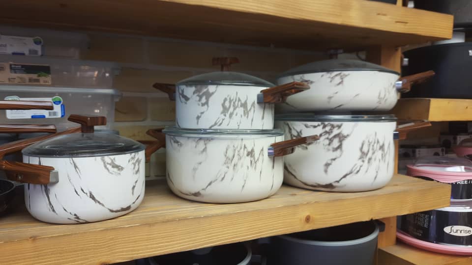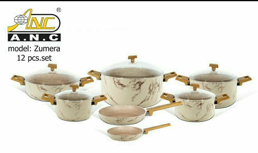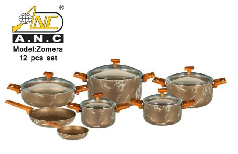 سرویس قابلمه ۱۲ پارچه ANC طرح سنگ و قابلمه های تک