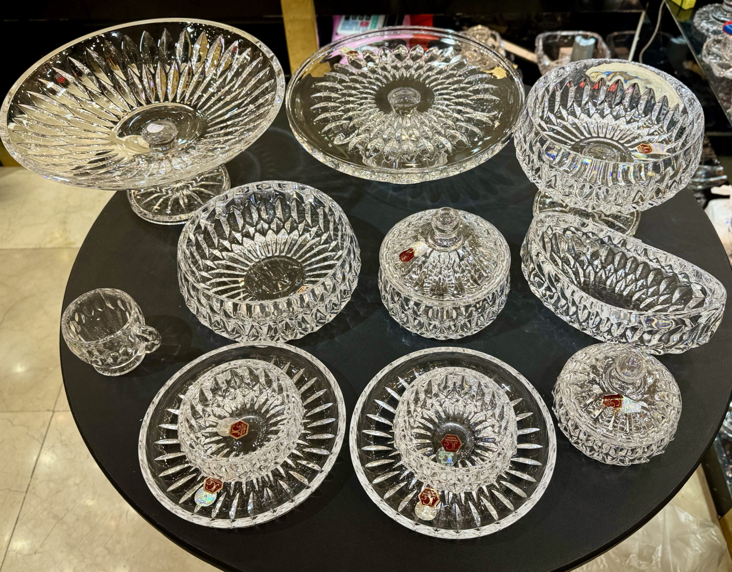 میوه خوری – شیرینی خوری- آجیل خوری- شکلات خوری – جاکاردی -پیاله 3 دست – پیش دستی 3 دست- فنجان 3 دست- نمکپاش 3 جفت – قندان 3 عدد