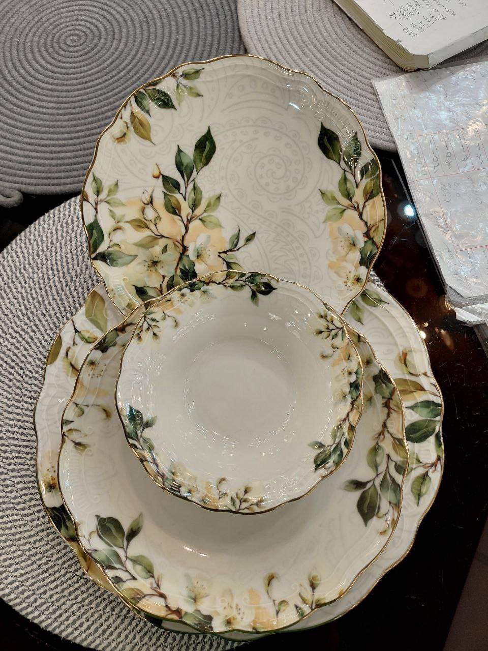 شامل:6 پلو خوری-6 خورش خوری -6 پیش دستی -6 پیاله -2 دیس بزرگ-1 سالاد خوری -1سس خوری -2نمکدان