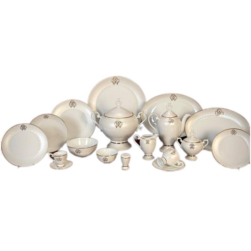 ۱۸عدد بشقاب غذاخورى/ ١٨عدد گود غذاخوری/ ۱۸عدد بشقاب پیش دستی/۱۸عدد کاسه ماست خوری/ ۳عدد دیس بیضی بزرگ/ ۱عدد دیس بیضی کوچک/ ۱عدد دیس گرد تهچین/ ۱عدد سوپ خوری دربدار/ ۱عدد قوری دربدار/ ۶عدد فنجان چای خوری و ۶عدد زیرفنجان/ ۶عدد فنجان قهوه خوری و ۶عدد زیر فنجان/ ۱عدد قندان دربدار/ ۸عدد نمکدان/۳عدد سس خوری یا شکر ریز/ ۱عدد کره خوری دربدار/ ۶عدد کاسه آبگوشت خوری/ /۲عدد کاسه سالاد بزرگ