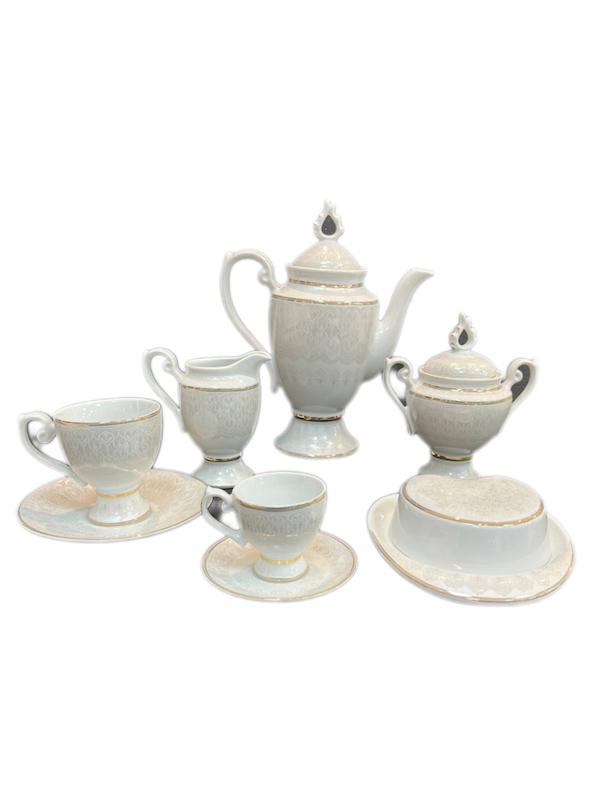 ۱۸عدد بشقاب غذاخورى/ ١٨عدد گود غذاخوری/ ۱۸عدد بشقاب پیش دستی/۱۸عدد کاسه ماست خوری/ ۳عدد دیس بیضی بزرگ/ ۱عدد دیس بیضی کوچک/ ۱عدد دیس گرد تهچین/ ۱عدد سوپ خوری دربدار/ ۱عدد قوری دربدار/ ۶عدد فنجان چای خوری و ۶عدد زیرفنجان/ ۶عدد فنجان قهوه خوری و ۶عدد زیر فنجان/ ۱عدد قندان دربدار/ ۸عدد نمکدان/۳عدد سس خوری یا شکر ریز/ ۱عدد کره خوری دربدار/ ۶عدد کاسه آبگوشت خوری/ /۲عدد کاسه سالاد ب