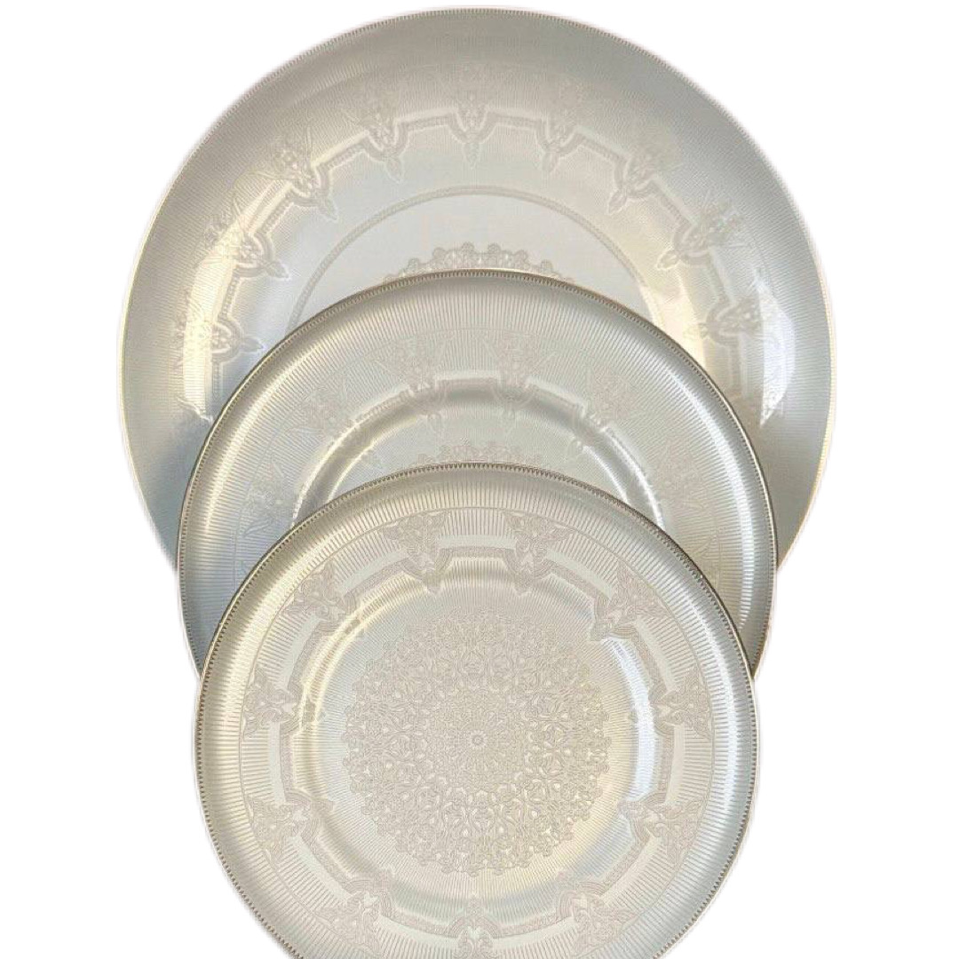 ۱۸عدد بشقاب غذاخورى/ ١٨عدد گود غذاخوری/ ۱۸عدد بشقاب پیش دستی/۱۸عدد کاسه ماست خوری/ ۳عدد دیس بیضی بزرگ/ ۱عدد دیس بیضی کوچک/ ۱عدد دیس گرد تهچین/ ۱عدد سوپ خوری دربدار/ ۱عدد قوری دربدار/ ۶عدد فنجان چای خوری و ۶عدد زیرفنجان/ ۶عدد فنجان قهوه خوری و ۶عدد زیر فنجان/ ۱عدد قندان دربدار/ ۸عدد نمکدان/۳عدد سس خوری یا شکر ریز/ ۱عدد کره خوری دربدار/ ۶عدد کاسه آبگوشت خوری/ /۲عدد کاسه سالاد بزرگ