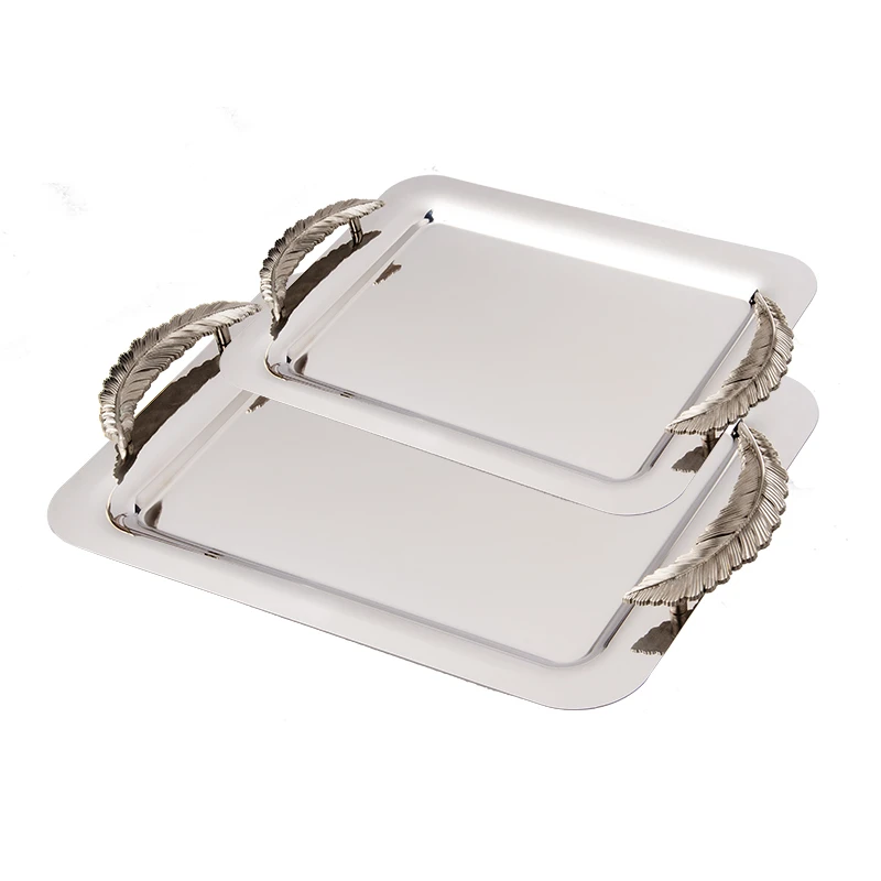 این مجموعه شامل دو عدد سینی استیل با دستههای طرح برگ نقره ای است که در دو سایز متوسط (۳۴x۲۶ سانتیمتر) و بزرگ (۴۳x۳۱ سانتیمتر) عرضه میشود