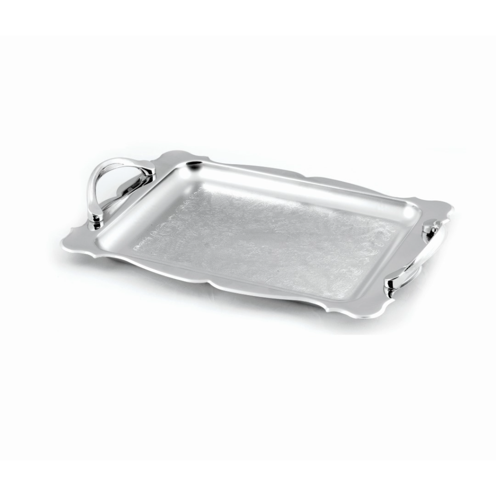 سینی استیل مستطیل کوچک طرح دار فریم سانا دسته کد صفر کروم کد 500p