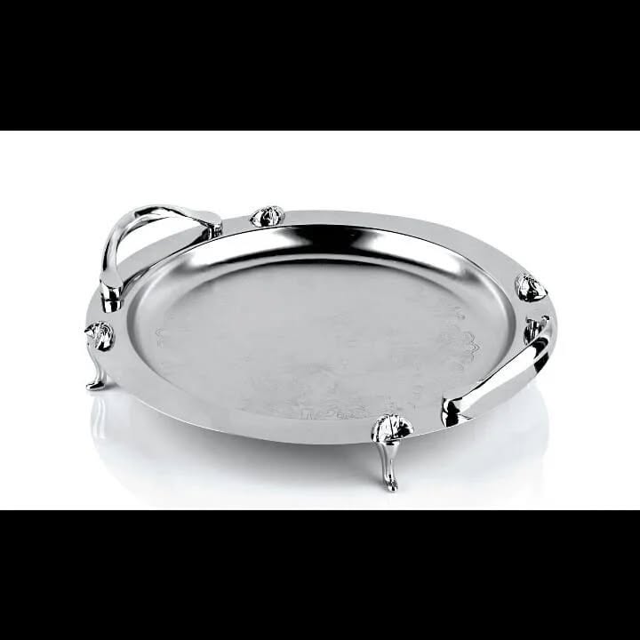 سینی استیل گرد کوچک پایه دار طرح دار فریم سانا دسته کد صفر کروم دیاکو کد 304.5P