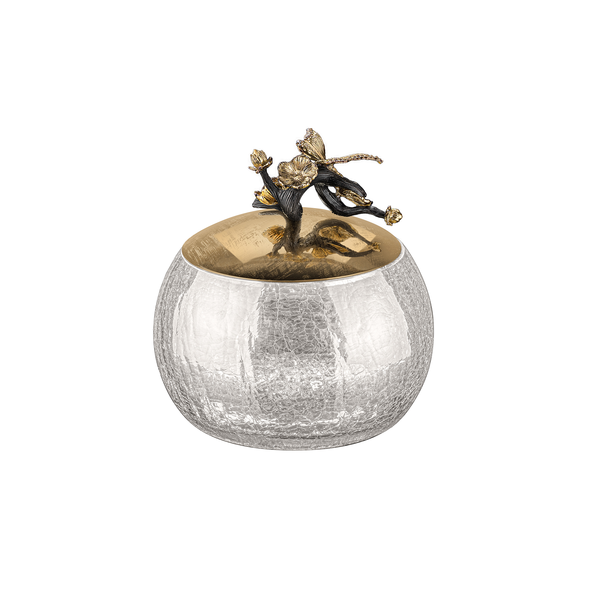 شکلات خوری درب دار شیشه برنج گلدکیش مدل دلاریس