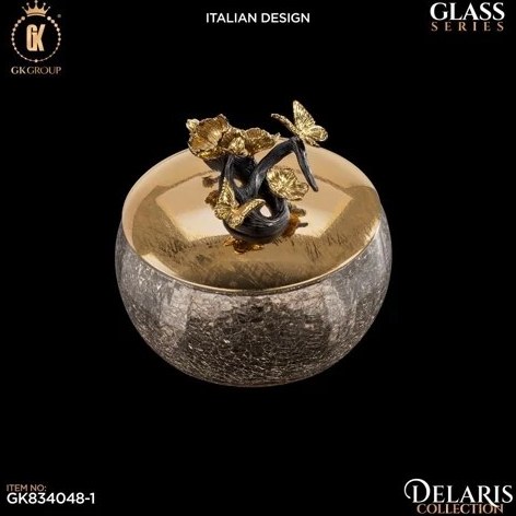 شکلات خوری درب دار شیشه برنج گلدکیش مدل دلاریس