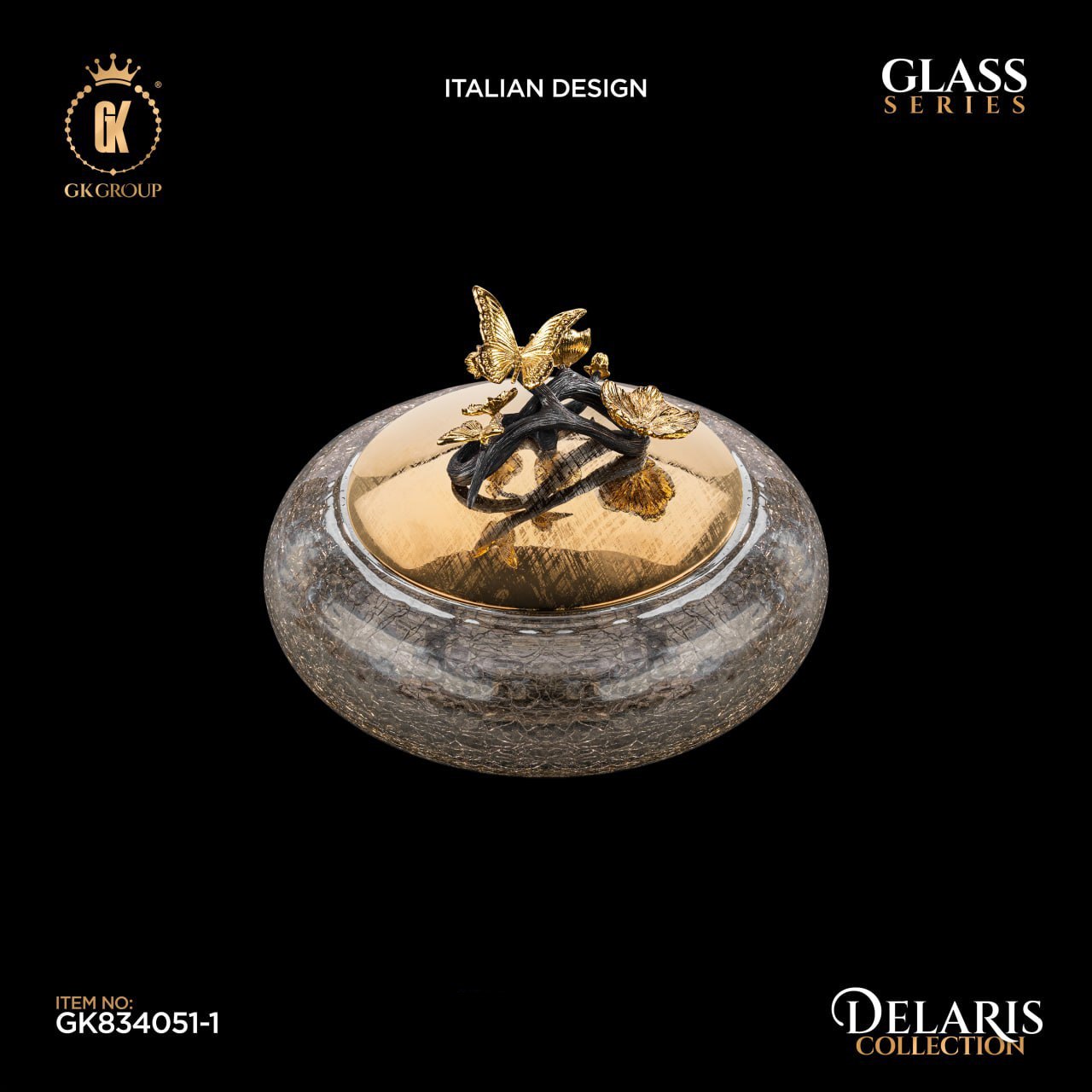 شکلات خوری درب دار شیشه برنج گلدکیش مدل دلاریس