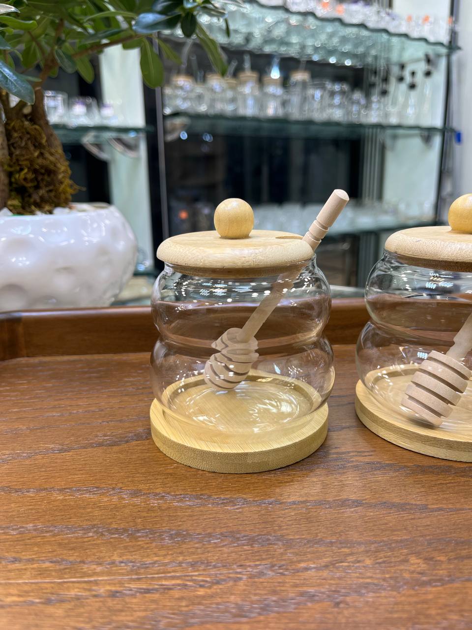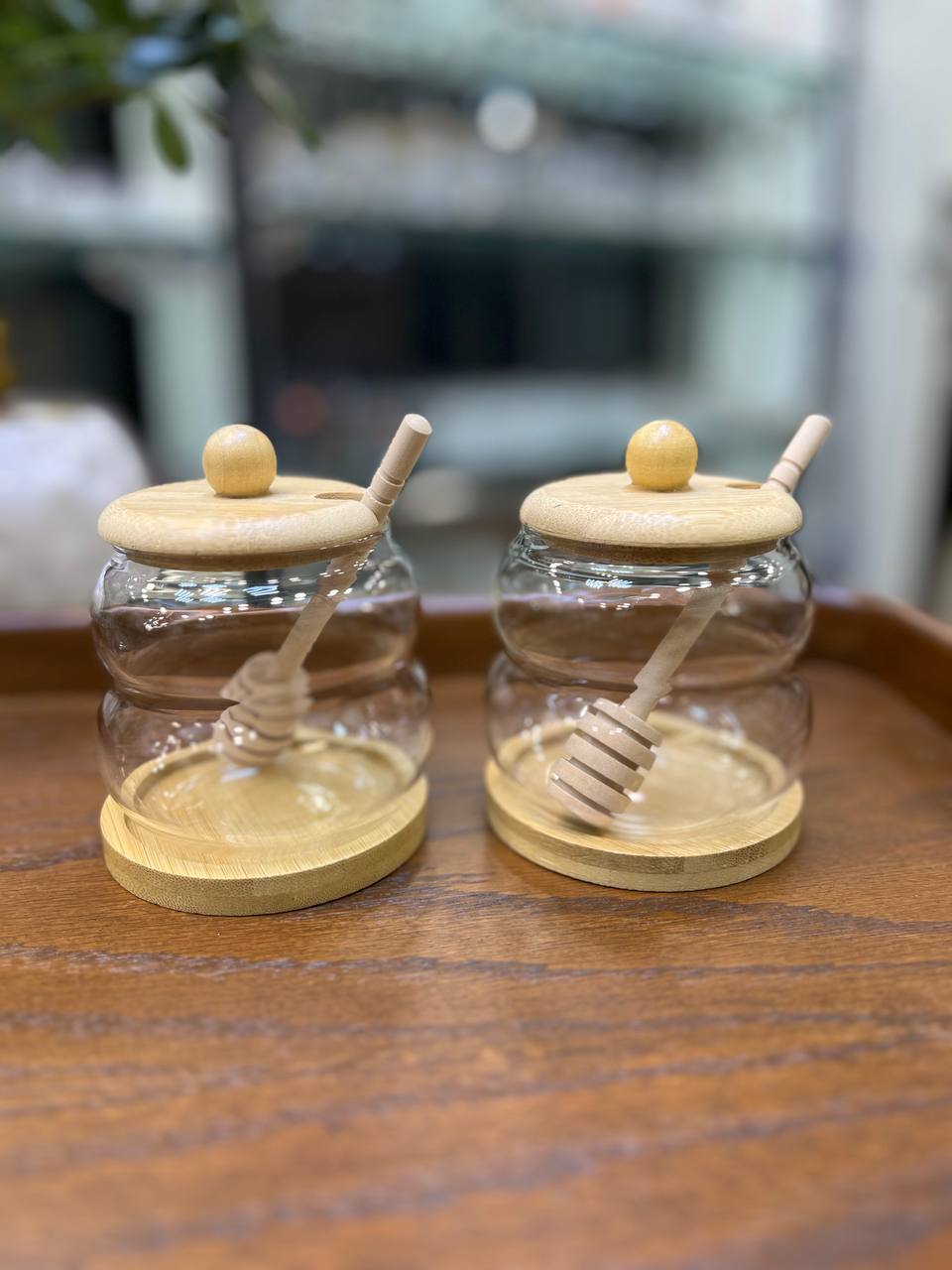 ظرف عسل دو طبقه درب و زیره بامبو