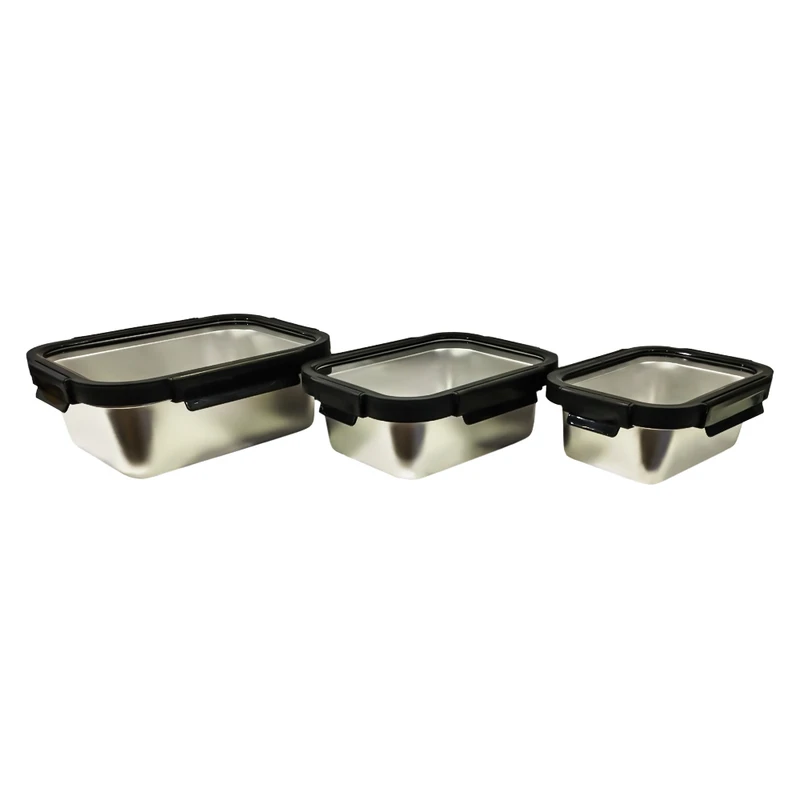 ظرف نگهدارنده سه تیکه استیل درب شیشه ای