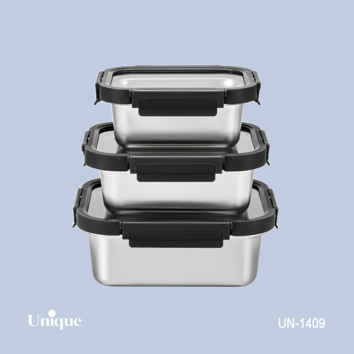 ظرف نگهدارنده سه تیکه استیل درب شیشه ای یونیک کد UN-1409