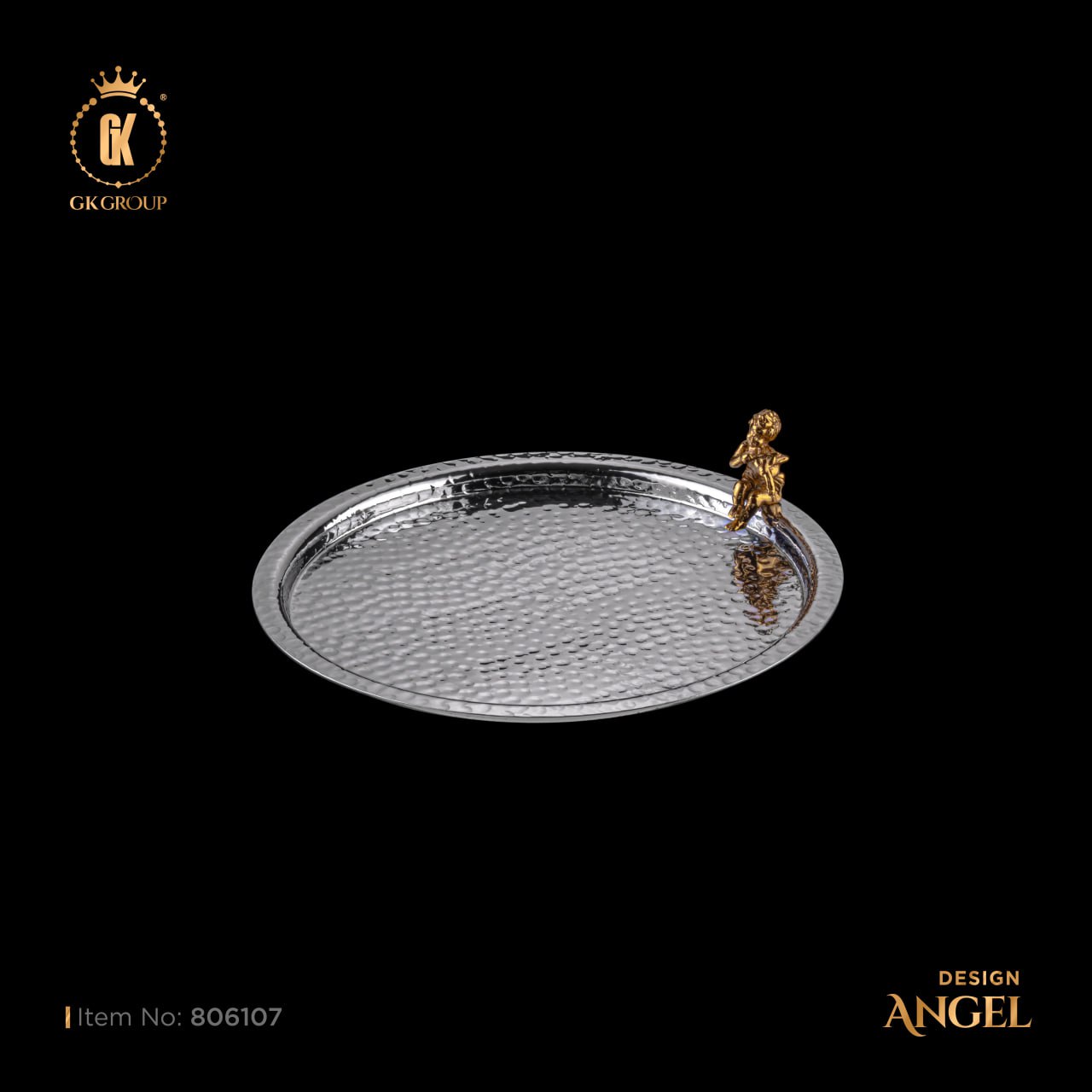 پیش دستي گرد استیل طرح آنجل گلدکیش