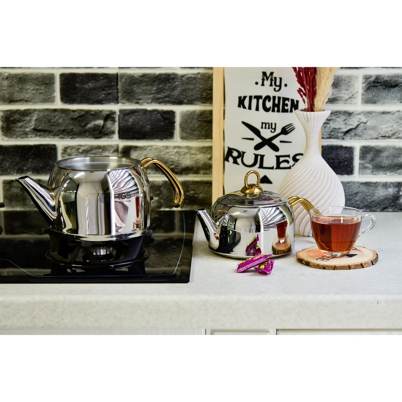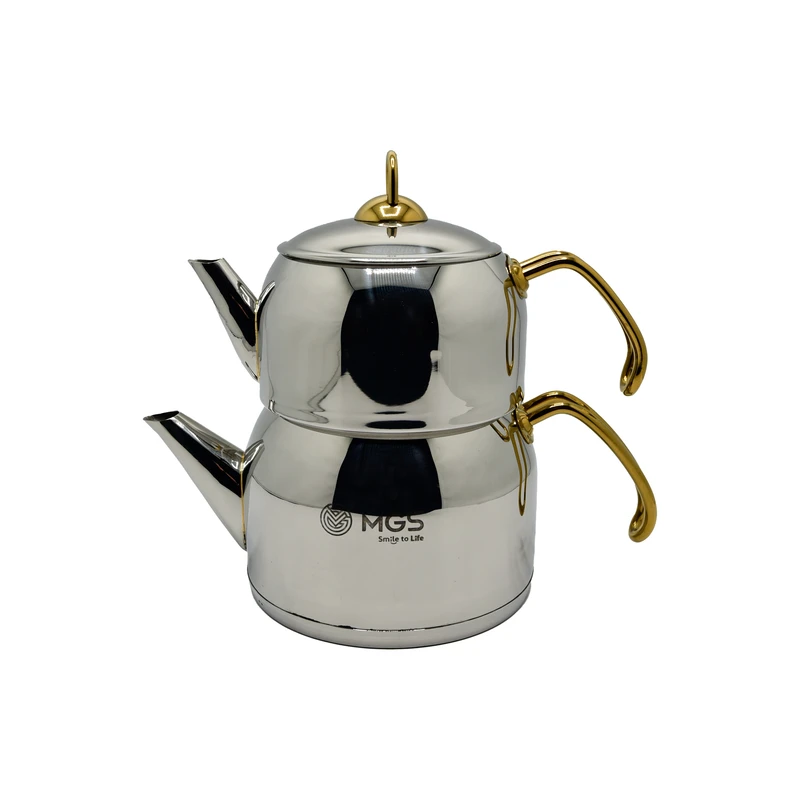 کتری و قوری استیل لوله دار یراق طلایی مدل MGS – k41014