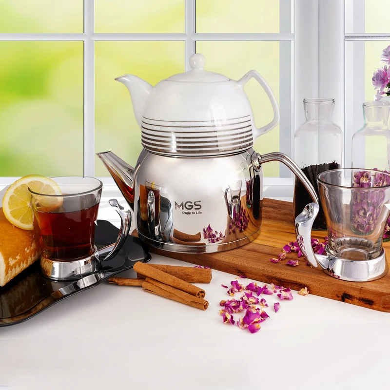 کتری و قوری لوله دار قوری چینی مدل MGS – k4109