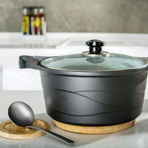 قابلمه های تک دایکاست عروس مدل موج سازنده: عروس کشور سازنده: ایران جنس پوشش: گرانیت جنس بدنه: آلومینیوم دایکاستی درب پیرکس سوپاپ دار بدنه